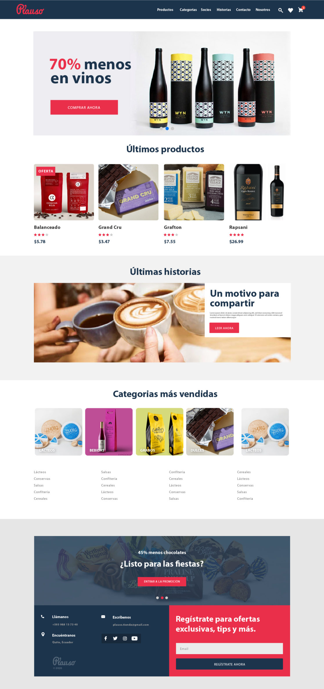 Brand development, social media design and strategy, app design, web design and development, and user experience for the Ecuadorian e-commerce “Plauso”.